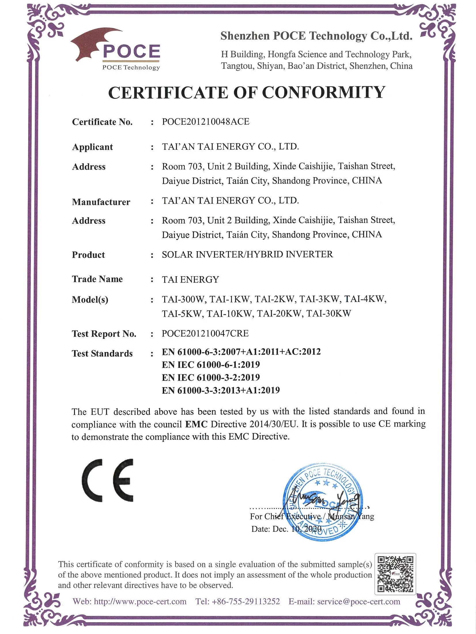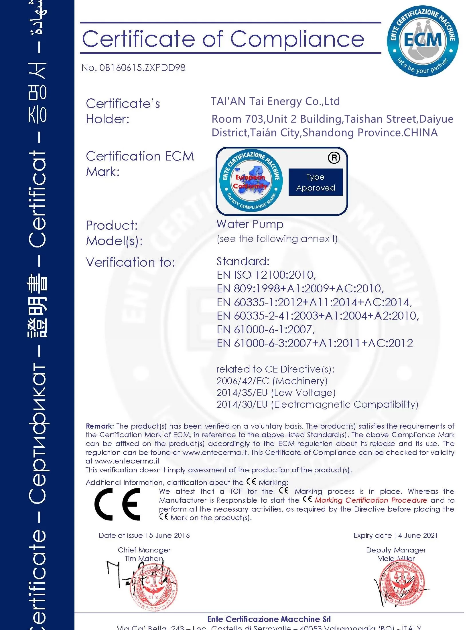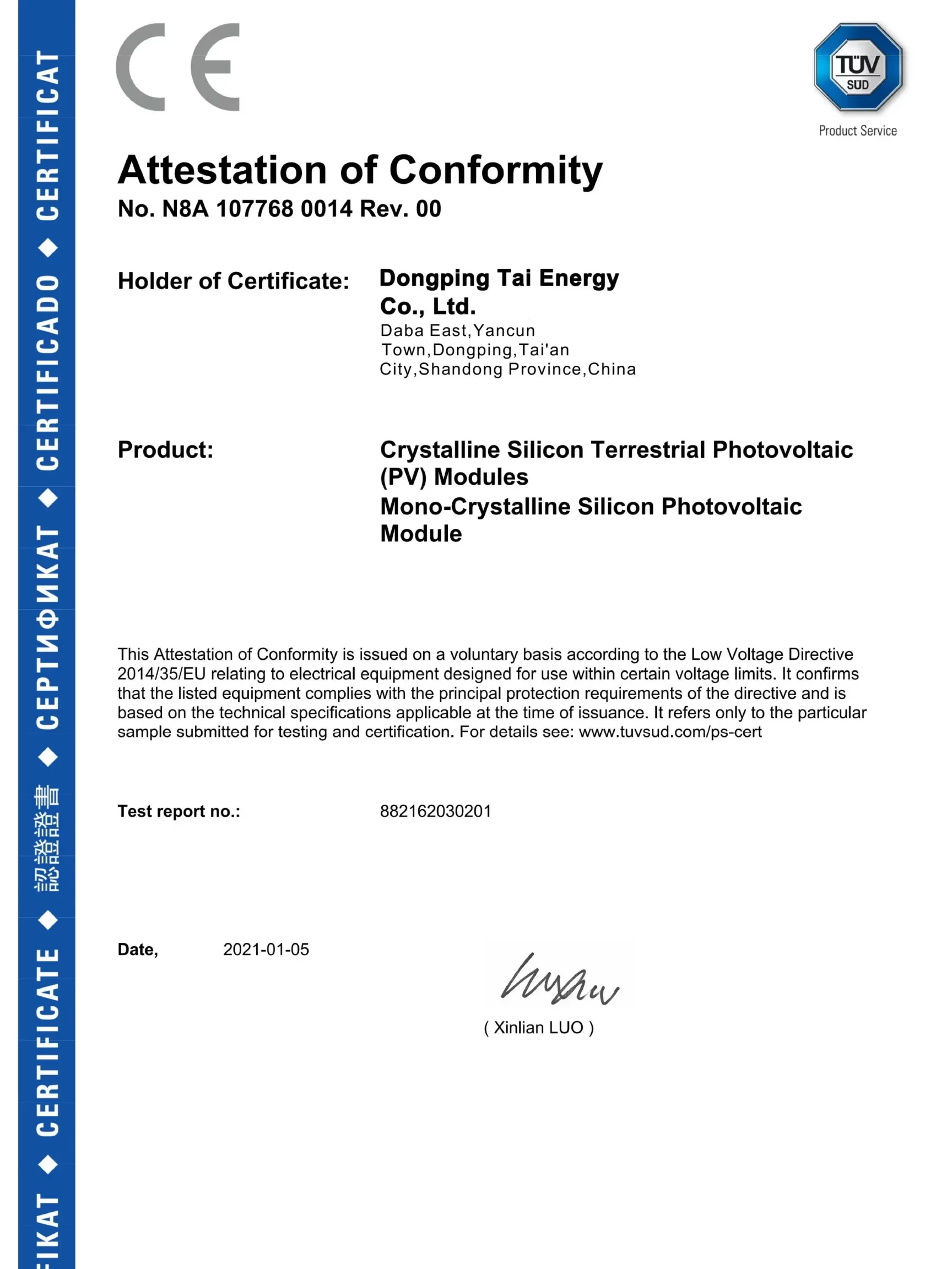 Certificate: CE